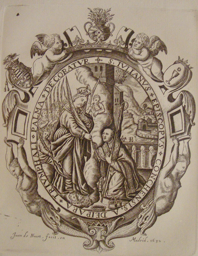 Cuando Noort llevaba establecido en la Villa y Corte cuatro años y había ejecutado ya un buen número de obras realizó un grabado que representa a San Julián, 2º obispo de la Diócesis de Cuenca recibiendo la palma de manos de la Virgen.